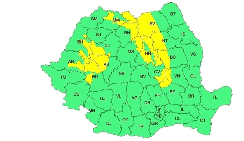 Fenomene vizate: intensificări ale vântului, precipitații moderate cantitativ predominant sub formă de ploaie