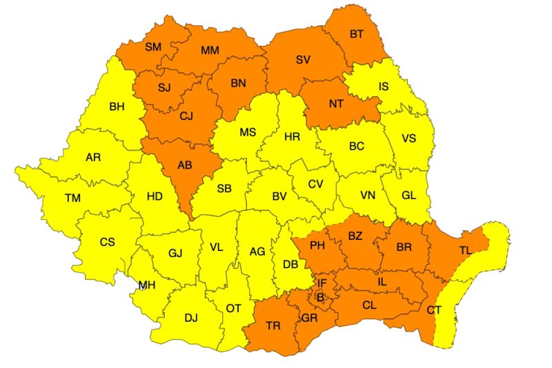 AVERTIZARE METEOROLOGICĂ: COD GALBEN