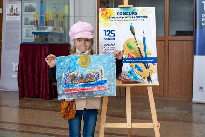 Şantierul Naval Damen Galaţi (SNDG), în parteneriat cu Centrul Cultural „Dunărea de Jos”, a organizat, pe 20 octombrie 2018, un concurs de grafică şi pictură pentru copii.