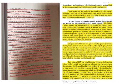 Potrivit sursei citate, în lucrarea de licență a acesteia, intitulată "Reglementări naționale și internaționale cu privire la libertatea de exprimare", se regăsesc paragrafe din două cărți, respectiv "Jurisprudența europeană privind libertatea de exprimare" și "Ghid juridic pentru jurnaliști".