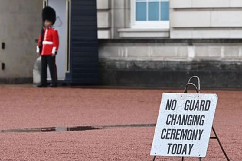 În același timp, la reședința regală principală din Londra nu va mai avea loc tradiționala ceremonie de Schimbare a Gărzii Regale. Palatul Buckingham a anunțat că Schimbarea Gărzii programată vineri dimineață a fost anulată. Un panou a fost amplasat într-o zonă centrală din fața palatului unde are loc de obicei ceremonia, pentru a anunța turiștii că a fost anulat.