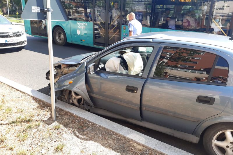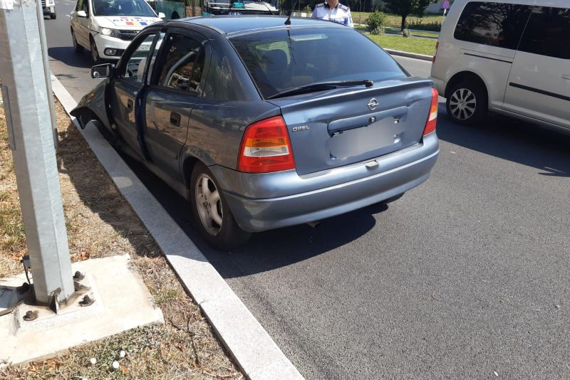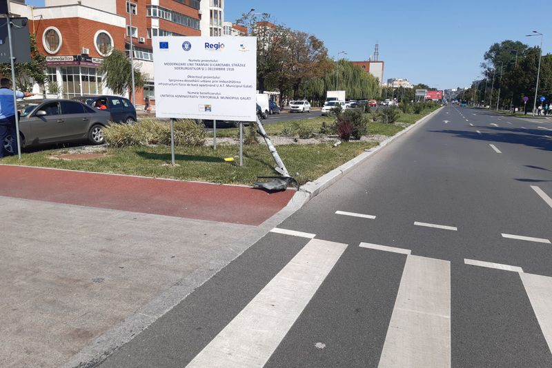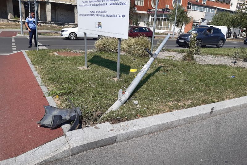 În cursul zilei de azi, în jurul orei 11.00, un bărbat, de 24 de ani, din municipiul Galați, a condus un autoturism Opel pe strada Brăilei și, la efectuarea virajului la dreapta, pe Bulevardul Siderurgiștilor din municipiul Galați, a pierdut controlul direcției și a pătruns pe scuar, lovind două semafoare pietonale, după care s-a oprit pe sensul opus de mers.