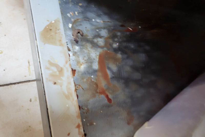 - folosirea unor condiții de păstrare a produselor alimentare total neigienizate , spaţii de lucru , paviment şi frigidere neigienizate, rafturi cu zone ruginite