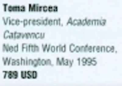 Monica Macovei, Florin Costiniu, Lucian Mihai, Daniela Pavelescu și Dorel Sandor au primit de la Soros 340 de dolari și 2,7 milioane de lei pentru a participa la o conferință la Budapesta. Monica Macovei, fostul ministru al justiției din perioada lui Traian Băsescu, a participat câțiva ani mai târziu chiar la nunta lui George Soros.