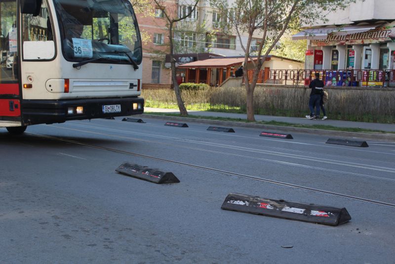 Separatoarele de sens de pe strada Traian, tronsonul cuprins între Piaţa Centrală (capăt de linie tramvai) şi strada Basarabiei, au fost montate în perioada 4-8 martie a.c., pentru a crea o bandă dedicată. Ele nu au supravieţuit traficului intens din zonă nici măcar o lună, pentur că şoferii trec peste ele, deşi nu au voie.Multe dintre ele sunt acum distruse, deplasate sau dispărute cu totul din locul unde au fost montate. Potrivit Primăriei municipiului Galaţi, dispozitivele avariate sau desprinse cu totul vor fi înlocuite cu altele noi, fără costuri suplimentare. Acest lucru este prevăzut în cadrul garanţiei contractului încheiat de