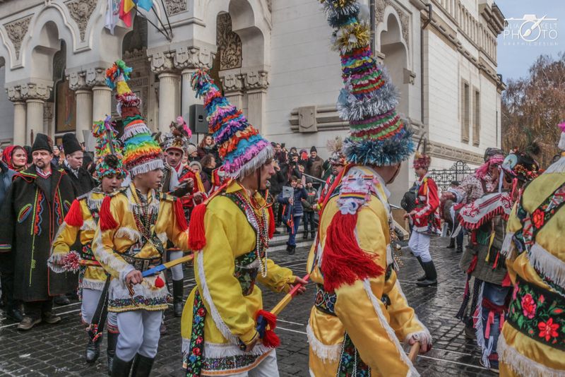 Spectacol de datini şi obiceiuri în fața Catedralei din Galați