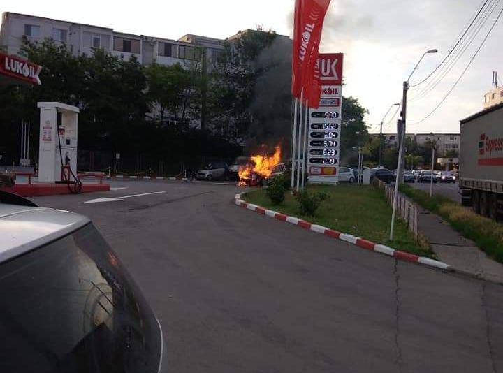 Un Logan a ars în Micro 13 B, lângă o stație de carburanți. Din fericire, incendiul nu s-a extins și nu au existat victime sau alte pagube.
