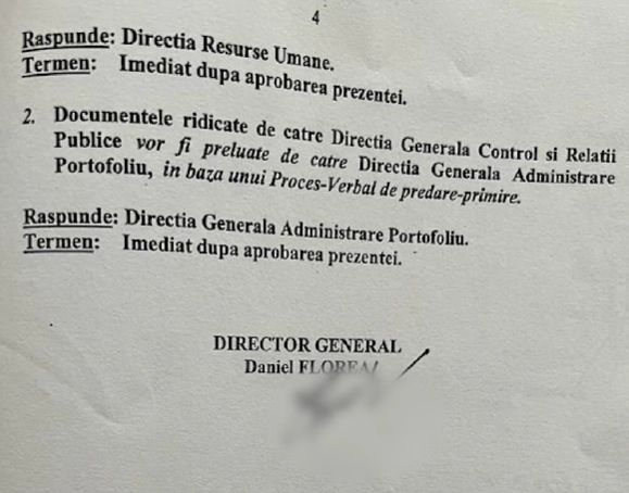 Măsuri: Emitere ordin AVAS pentru predarea tuturor documetnelor la data reorganizarea unitatii, ridicate și preluate in baza unu Proces Verbal, semnat de directorul general Daniel Florea, Laura Voicu”, a prezentat Anca Alexandrescu Opisul documentelor găsite.